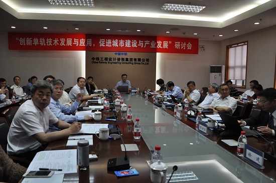 2018年6月22日,由中國中鐵“中國單軌交通發(fā)展研究中心”、中鐵設(shè)計(jì)集團(tuán)、中鐵設(shè)計(jì)集團(tuán)院士專家工作站主辦的 “創(chuàng)新單軌技術(shù)發(fā)展與應(yīng)用,促進(jìn)城市建設(shè)與產(chǎn)業(yè)發(fā)展”研討會(huì)在京召開。中國工程院聶建國院士、楊秀敏院士、梁文灝院士、杜彥良院士、王復(fù)明院士、陳湘生院士,中國中鐵股份有限公司副總裁、總工程師劉輝、中國機(jī)械工業(yè)集團(tuán)有限公司總經(jīng)理徐建、住房和城鄉(xiāng)建設(shè)部標(biāo)準(zhǔn)定額研究所處長雷麗英、山東大學(xué)副校長李術(shù)才、東北大學(xué)副校長馮夏庭、河海大學(xué)王媛院長、中鐵高新工業(yè)股份有限公司總經(jīng)理李建斌、中鐵科工集團(tuán)有限公司總經(jīng)理林承朝、中鐵設(shè)計(jì)集團(tuán)董事長、黨委書記李壽兵、總經(jīng)理王洪宇、總工程師陳紅念、市場總監(jiān)武農(nóng)等領(lǐng)導(dǎo)及技術(shù)負(fù)責(zé)人共50余人參加了會(huì)議。王洪宇總經(jīng)理主持會(huì)議。