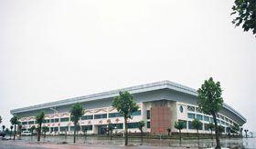 ②體育場: 總占地面積31000m2,國際比賽標準田徑、足球場,觀眾看臺座椅數14760座,附屬房屋建筑面積5227.43m2; 看臺雨篷最大懸挑長度14m。